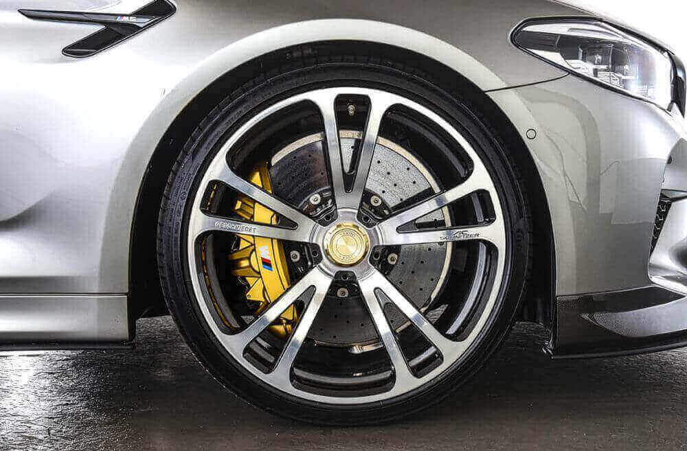 Wheelset development at AC Schnitzer A few definitions in advance Wheel/complete wheel = rim incl. tyre Wheel set = 4 wheels xi/xd wheel sets = special wheel sets for all-wheel drive vehicles (xDrive) Mixed-sized tyres = tyres wider on the rear axle than on the front axle All-round tyres = same tyre size on the front and the rear axle The wheels have a really important role: they are the postcard-sized connection between the vehicle and the road. They play a key role in the driving and propulsion as well as the deceleration – i.e. braking – of your vehicle. This gives the wheels a key role. Anyone who develops and sells wheels therefore has a great responsibility. We are aware of this responsibility; we have internalized it and implement it with every new development. AC Schnitzer only uses high-quality brand tyres, which are developed in close cooperation with premium tyre manufacturers. On the one hand, the tyres have to transfer the power of the engine perfectly to the road, on the other hand, properties such as braking behaviour, lateral control, water drainage in rain and the properties in straight running are important decision criteria for or against a tyre. A wheel set with wide base tyres is always also an investment in increasing driving safety and dynamics. In order to maintain driving comfort when using larger wheel dimensions, we at AC Schnitzer have actively opted against run-flat tyres and for sporty, conventional tyres. Conventional tires build up less rolling resistance and offer noticeably more comfort. AC Schnitzer specialises in mixed-sized tyres, i.e. wheel sets in which the wheels of the rear axle are wider than those of the front axle. This makes sense in terms of driving dynamics, as it allows strong drive forces to be transmitted while at the same time enabling high steering precision. Although the wider a tyre is, the more power you can put on the road, the rolling resistance caused by the tyre must not become too high. As the rolling resistance increases the wider a tyre is, AC Schnitzer works out the wheel dimensions that are balanced. AC Schnitzer develops special wheel/tyre combinations for all-wheel drive vehicles and orientates itself on the specifications of the vehicle manufacturer. These AC Schnitzer wheel sets are marked “xi/xd”. Only those wheel dimensions are developed and approved for all-wheel drive vehicles that are as gentle on transfer cases as standard wheel sets. All AC Schnitzer wheel sets are tuned in multi-stage driving tests in traffic and on race tracks. Only after successful test runs the wheels are released for sale. All AC Schnitzer wheel sets are delivered fully assembled and balanced. They are subject to a two-year manufacturer’s warranty. The scope of delivery includes mounting materials such as adapters and wheel bolts as well as the homologation certificate (with the exception of marked wheelsets for export). Philosophy/Design The wheels not only physically but also optically connect a car to the road. “That‘s why it‘s very important to have the right dimensions between the proportions of the rims to the bodywork,“ explains AC Schnitzer chief designer Michele Viandante. Rims that are too small quickly make a vehicle appear high-legged and unstable. The new Lightweight Forged Rims ”AC3 Evo“ from AC Schnitzer, on the other hand, are truly earthy. – machined “GESCHMIEDET” logo on the front – machined original AC Schnitzer logo – open design in Silver/Anthracite or Anthracite/Silver, giving a clear view to the brakes – central locking optic in gold or grey The highlight of the AC Schnitzer rim technology and the exclusive development for the BMW M5 is the latest development stage of the AC3 Lightweight Forged Wheels “Evo” with central locking optic. Even though the new Lightweight Forged Wheels inch clearly belong to the AC3 design family, their appearance is particularly technical due to the central locking nut and the fact that the wheel bolts are no longer visible. They “disappear” under a special aluminium cover that is screwed together with the additional central lock. In addition to their sporty appearance both together also serve as anti-theft devices, which is why a special key is included in the scope of delivery. The AC3 Lightweight Forged Rims “Evo” are available in the colour variants BiColor Silver/Anthracite or BiColor Anthracite/Silver. Depending on how extravagant or discreet the customer wishes his wheel set to be, he can choose between grey or gold for the colour of the central locking nut. The Lightweight Forged Rims have a partly polished and partly painted surface. Regardless of the colour, all AC3 Lightweight Forged Wheels have two noble, milled letterings: “AC Schnitzer” and “GESCHMIEDET” (forged). The central design element of the AC3 Lightweight Forged Rims “Evo” is not only in a figurative sense the visible central locking nut with aluminium cover. This unit makes a hub cap superfluous for the first time in the “rim history” of AC Schnitzer. The filigree yet solid spoke matrix with its five triangular struts of the AC3 Lightweight Forged Rims has been further weight-optimised for the new 21-inch version and for the first time also in the visible area of the rims. The side walls of the rim spokes have recesses which minimize the wall thickness of the spokes. However, the “art of omitting” has not only led to a weight reduction in the AC3 Lightweight Forged “Evo” Rims, but also to an even sportier appearance. – high quality lightweight forged wheels save approx. 25-35% weight, compared with conventional cast wheels – perceptible reduction in unsprung mass and gyroscopic forces on the car, therefore – significantly improved driving dynamics – significantly improved acceleration and deceleration due to lower masses – improved cornering handling – high quality clear lacquer protects the wheel against corrosion, therefore – long lif