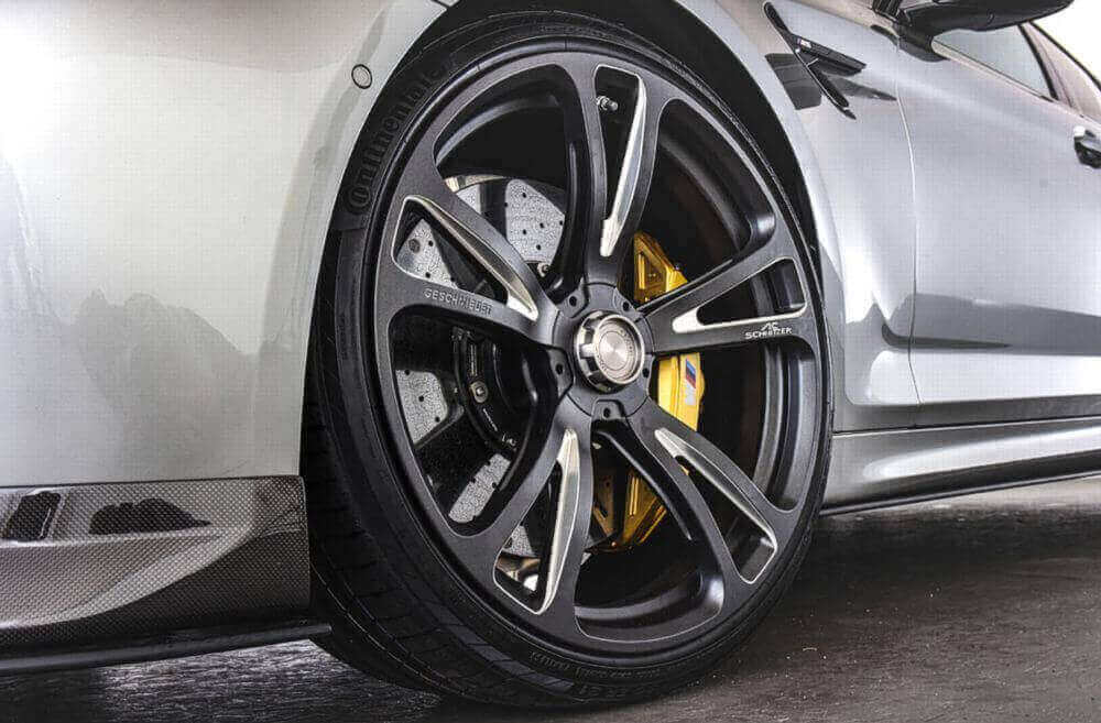 A wheel set with wide base tyres is always also an investment in increasing driving safety and dynamics. In order to maintain driving comfort when using larger wheel dimensions, we at AC Schnitzer have actively opted against run-flat tyres and for sporty, conventional tyres. Conventional tires build up less rolling resistance and offer noticeably more comfort.