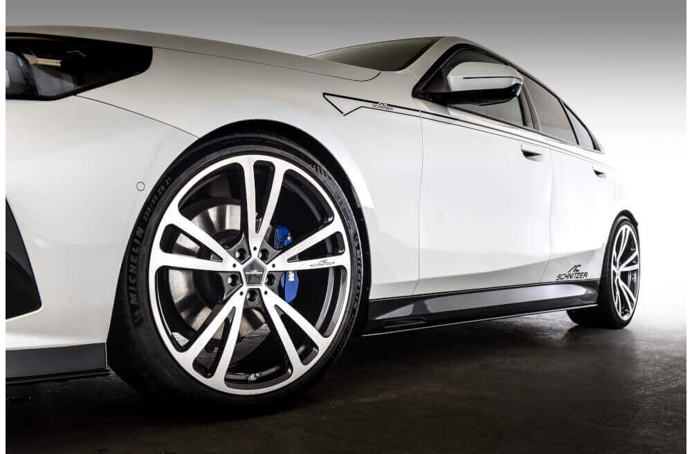 A wheel set with wide base tyres is always also an investment in increasing driving safety and dynamics. In order to maintain driving comfort when using larger wheel dimensions, we at AC Schnitzer have actively opted against run-flat tyres and for sporty, conventional tyres. Conventional tires build up less rolling resistance and offer noticeably more comfort.