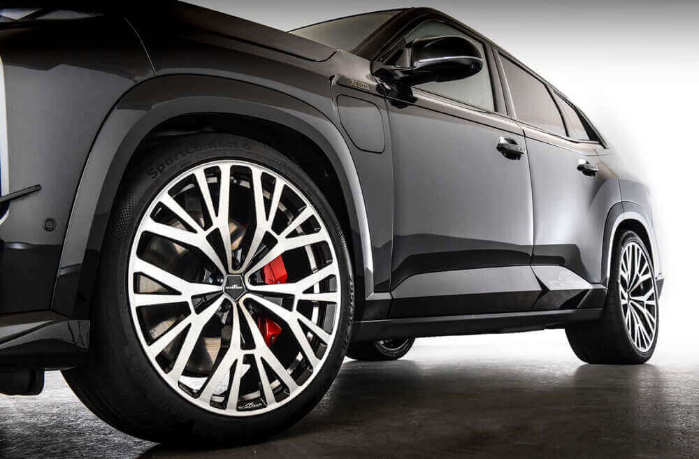 A wheel set with wide base tyres is always also an investment in increasing driving safety and dynamics. In order to maintain driving comfort when using larger wheel dimensions, we at AC Schnitzer have actively opted against run-flat tyres and for sporty, conventional tyres. Conventional tires build up less rolling resistance and offer noticeably more comfort.