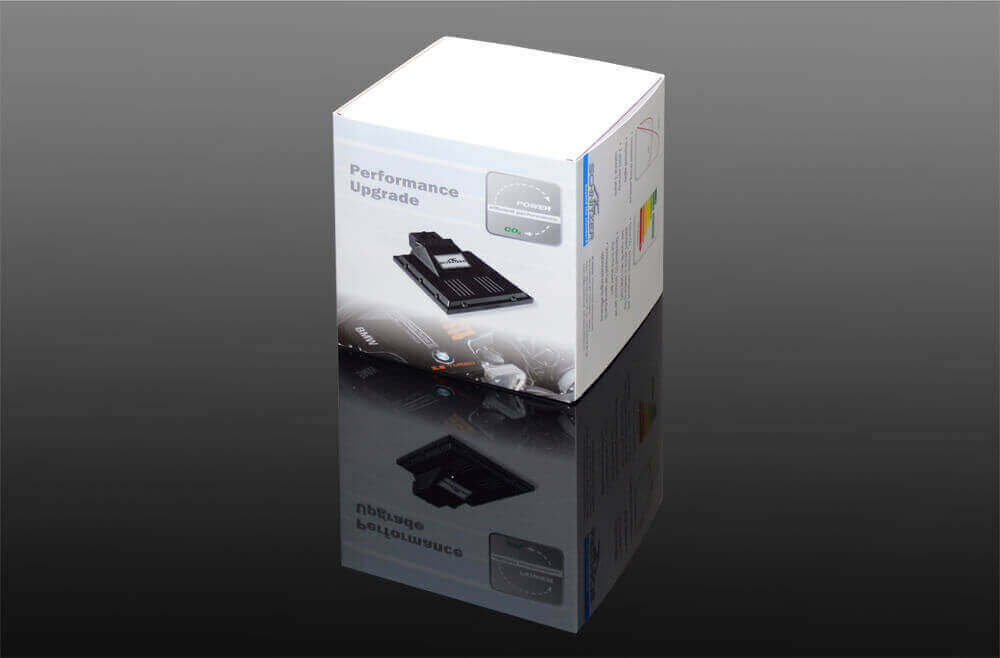 The performance upgrade consists of a control unit for retrofitting into the vehicle. The control unit ensures that the data is processed depending on the speed and accelerator pedal position and the values for boost pressure, track pressure and air mass are passed on to the standard engine control unit. The parameters are slightly increased by the AC Schnitzer performance increase.